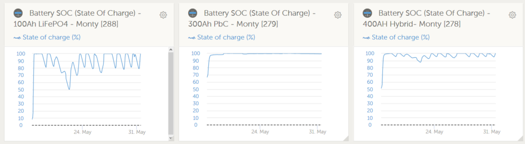 Basically, this Post-charge Absorption/CV phase is in my opinion the only real potential issue with the Hybrid Battery Bank. The data analysis I was able to do and showed earlier meant I could get a good insight into how to manage this.