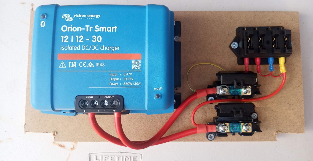 Note: The Victron B2B we usually supply is the ‘non-isolated’ version with a single ground (as per the template) rather than the ‘isolated’ version in these photos, so the wiring shown will assume that usual controller.
