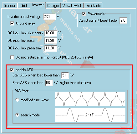 Different inverters will have different modes and results. AES is a MultiPlus mode, the Victron Phoenix inverters have an “ECO” mode, other brands will do their own thing.